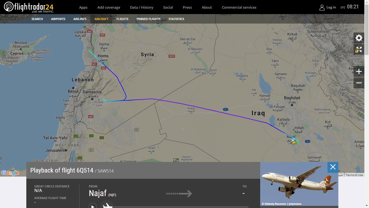 Cham Wings flight 6Q514 Najaf-Damascus was almost shot down near Damascus last wednesday after Syrian President Bashar al-Assad's forces fired a volley of missiles at Israeli jets, as a result made an emergency landing in Khmeimim air base