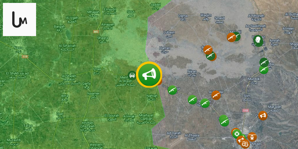 An airstrike targeted the vicinity of the road linking the town of Busra al-Harir in the eastern Daraa countryside and villages in the western Sweida countryside