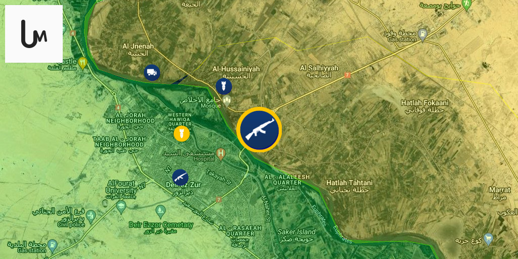 Unknown assailants attacked SDF positions with machine guns near the banks of the Euphrates River in the towns of Dhiban and Abu Hardoub, east of Deir ez-Zor
